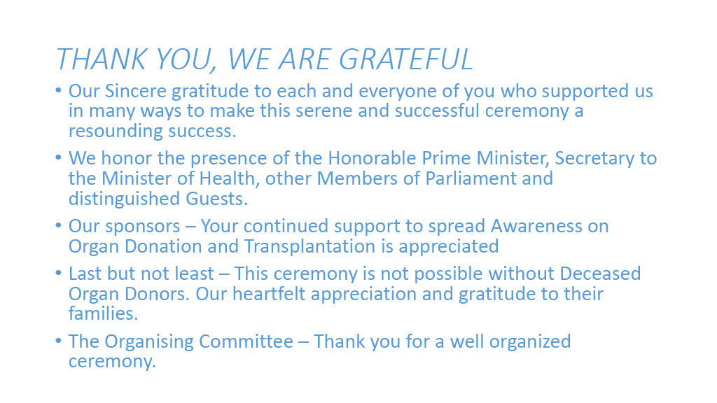 Organ Donor Day was observed on the 18th of February 2022 at the hospital. Commencing with a religious ceremony, families of deceased organ donors were felicitated.
